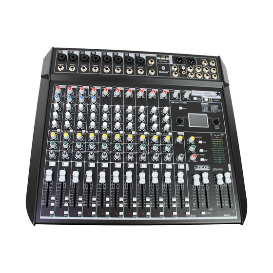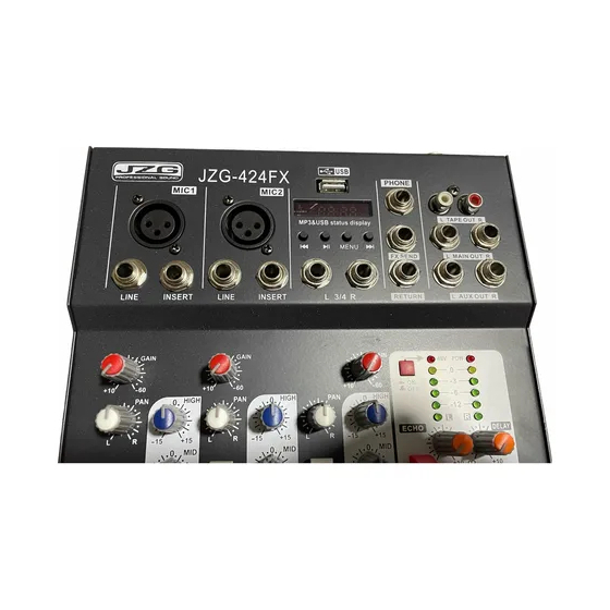 Marca JZG Modelo JZG14FX Voltaje 127/220V Otros Tipo de consola Digital Tipos de alimentación Corriente eléctrica Con alimentación fantasma Sí Con efectos Sí Principales efectos incluidos 99 tipos incorporados de 24BIT DSP+ Conectores Auxiliar, USB, XLR Cantidad de canales 14