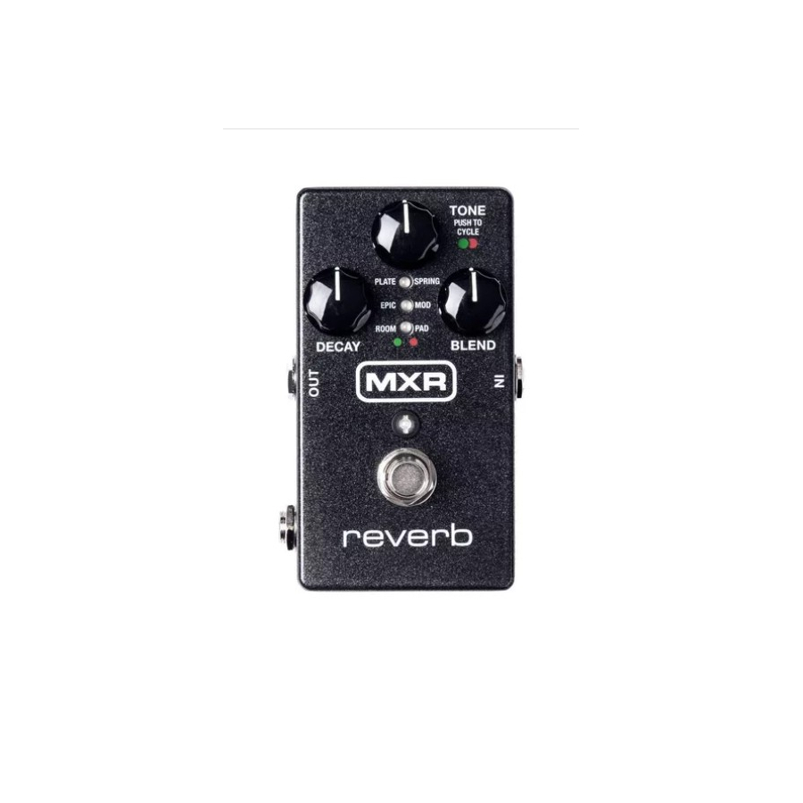 Pedal De Efecto MXR Reverb M300 El pedal MXR Reverb ofrece seis estilos de reverberación de gama alta distintos, cada uno exquisitamente diseñado y puesto a punto por el galardonado equipo de diseño MXR. Todo viene en una caja de MXR de tamaño estándar con una simple configuración de tres perillas y una señal analógica de alta fidelidad con un masivo 20 voltios de altura gracias a Constant Headroom Technology. Cada estilo de reverberación es tan rica en detalles como cualquier encontrar en las unidades de rack de gama más alta y plug-ins. Se puede utilizar el pedal DVP a la toma de expresión para alternar y mezclar entre dos configuraciones de ajuste del mando diferentes. Carcasa de aluminio. Alimentación: Adaptador de CA ECB003 Dunlop (se vende por separado) o una pila de 9 voltios.