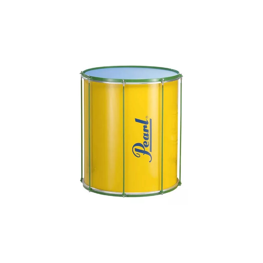 os Surdos son la voz de bajo y la base de la Línea de Samba Brasileña. Las ligeras carcasas de madera de los surdos de Pearl's Brazilian Percussion permiten horas de juego cómodo cuando se usan sobre el hombro con la correa proporcionada. Están disponibles en tamaños 18×22, 20×18 y 22×22 (diámetro x profundidad) e incluyen cabezales sintonizables de dos capas con una capa exterior de cuero sintético para frecuencias bajas acentuadas. La duradera cubierta de plástico amarillo con detalles verdes y azules resalta los colores de Brasil. Sin garantía