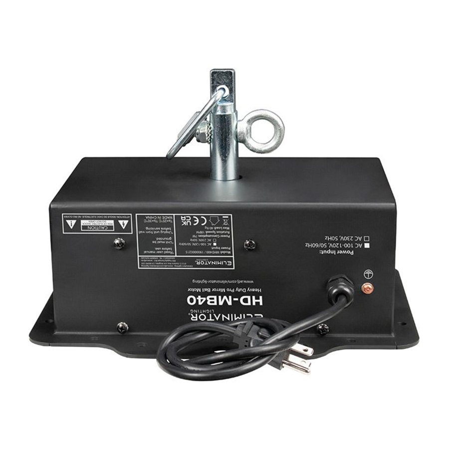 Especificaciones: motor de bola de espejo profesional resistente para uso con bolas de espejo de hasta 101,6 cm (40 pulgadas). Carga máxima: 90 libras. (40 kg) Uso en interiores solo Velocidad de rotación: 1-1.5 RPM (no ajustable) Tamaño/peso: longitud: 286 mm. Ancho: 242 mm. Altura horizontal: 191 mm. Peso: 11.55 libras. (12 libras) eléctrico/térmico: CA 100-120 V - 50/60 Hz Consumo máximo de energía: 7 W Ta = 25 grados Tb = 30 grados