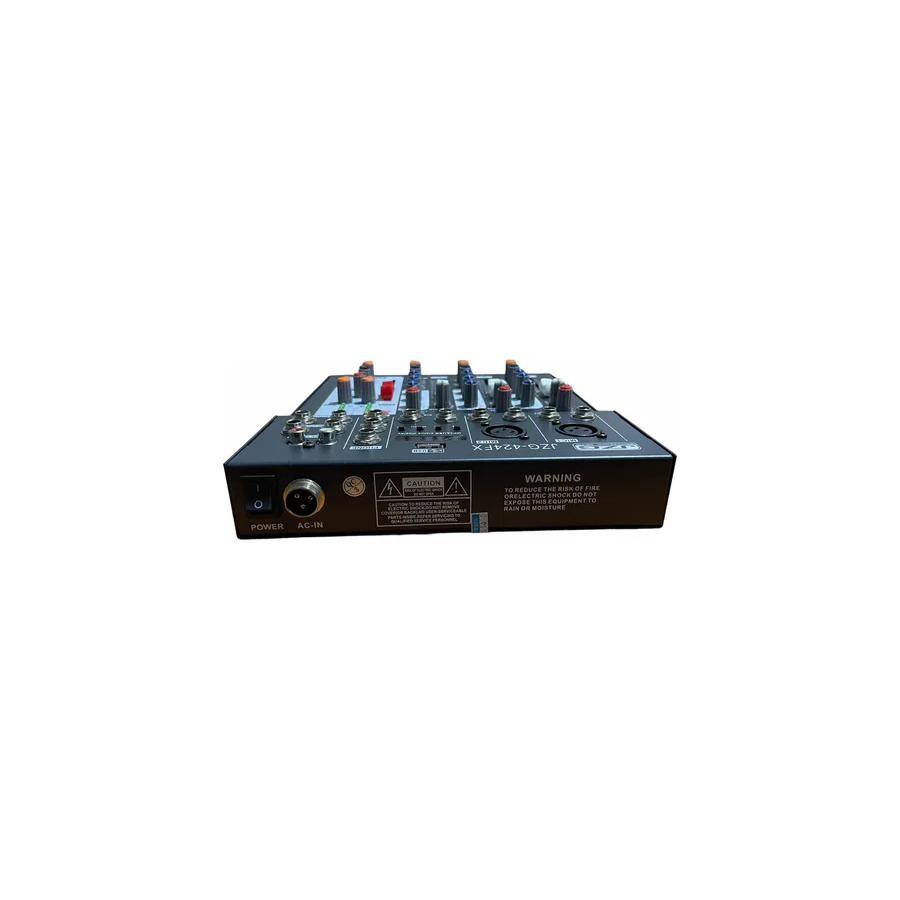 Excelente mezcladora de 4canales con entrada usb y Bluetooth para reproducción, cuenta con efectos como Delay y eco ideal para eventos sociales, cantantes solistas dj etc