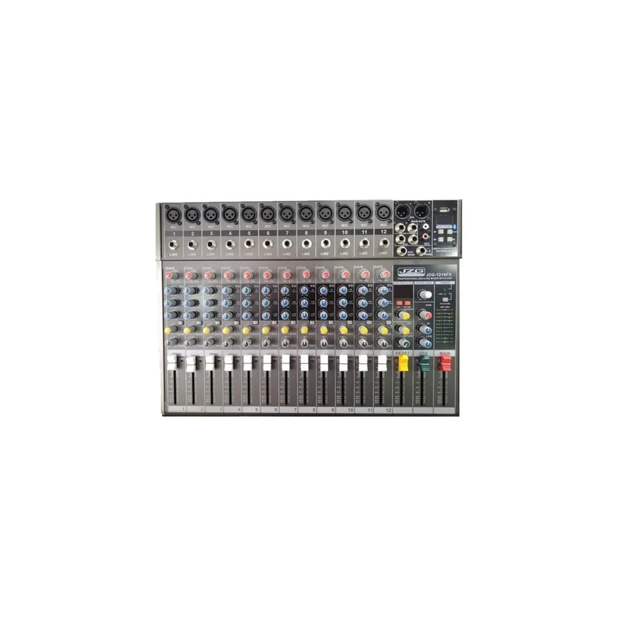 Marca JZG Modelo JZG 1216FX Voltaje 127/220V Otros Tipo de consola PASIVA Con efectos Sí Cantidad de canales 12 Peso 2.5 kg