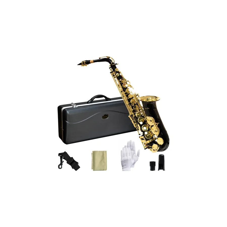 Características - Saxofón alto en mi b (Eb) - Terminado laca color negro con llaves y pabellón dorado - Material del cuerpo de latón - Rango: de si b (Bb) a alto FA sostenido (F#) - Llave auxiliar de espátula para F# y F frontal - Llave generadora de MIb - Tecla de octava con diseño de junta esférica para una acción más fluida y rápida - Tecla de asociación de mano izquierda que mejora la facilidad de ejecución - Abrazadera de campana con superficie de contacto de 2 puntos de apoyo para una mejor protección y una respuesta de soplido sin cortapisas - Anillo de la cinta de cuello con tornillo plano para fácil opresor de cuello - Decoración de campana por estampado - Botones de llaves terminados en concha nácar - Tornillos de pivote sin cabeza terminados con puntos de nylon Incluye - Boquilla - Estuche rígido de plástico con interiores afelpados - Tahalí
