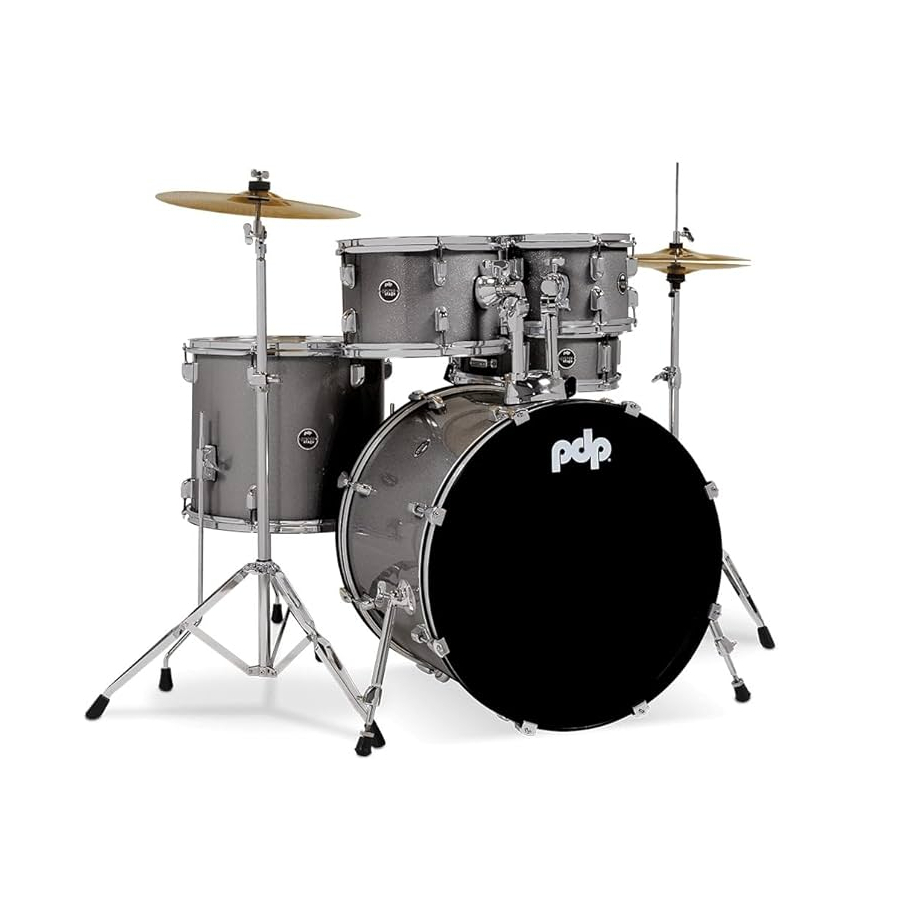 Tambores de madera de Álamo de alta calidad. Disfruta de la apariencia llamativa y la increíble durabilidad que Center Stage te brinda. El kit incluye una Tarola, un Bombo, un Tom de piso y dos Toms de aire, además, Center Stage cuenta con herrajes de doble refuerzo y varillas de tensión True-Pitch, estas y otras características que normalmente están reservadas para los tambores de gama alta hacen que los kits Center Stage de PDP sean perfectos para cualquier baterista, ya seas principiante o profesional. -Bombo de 22"x16”. -Tom 1 de 10"x7”. -Tom 2 de 12"x8”. -Tom de piso de 16"x14”. -Tarola de 14"x5”. -Acabado: Mica. -Color: Silver Sparkle. Incluye: -Pack de 3 Platillos de Latón (Hi-Hats y Crash). -Base para Tarola. -Base para Hi-Hats. -Atril para Platillo. -Pedal Sencillo para Bombo.