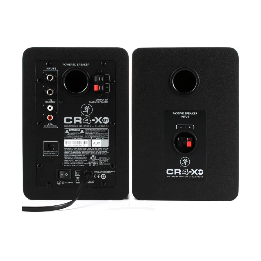 El Mackie CR4-XBT es un par de monitores multimedia Creative Reference Series de 4 pulgadas habilitados para Bluetooth que ofrecen una solución compacta para la reproducción de audio de calidad en estudios domésticos y configuraciones de juegos. Con 50W de amplificación que impulsa woofers de 4 pulgadas y tweeters de 0,7 pulgadas, los monitores CR4-XBT funcionan bien, ya sea que estés creando contenido o disfrutando casualmente algunas canciones. - El par consta de un altavoz pasivo y un altavoz alimentado que se conectan con un cable de altavoz incluido. Cada monitor incorpora un puerto trasero personalizado para extender suavemente el extremo bajo y una guía de onda especialmente diseñada para una claridad y una dispersión adecuada de frecuencias altas. Con muchas E/S proporcionadas, el CR4-XBT puede aceptar una conexión por cable desde su interfaz de audio o tarjeta de sonido de su computadora, o una transmisión inalámbrica a través de Bluetooth desde su dispositivo móvil.