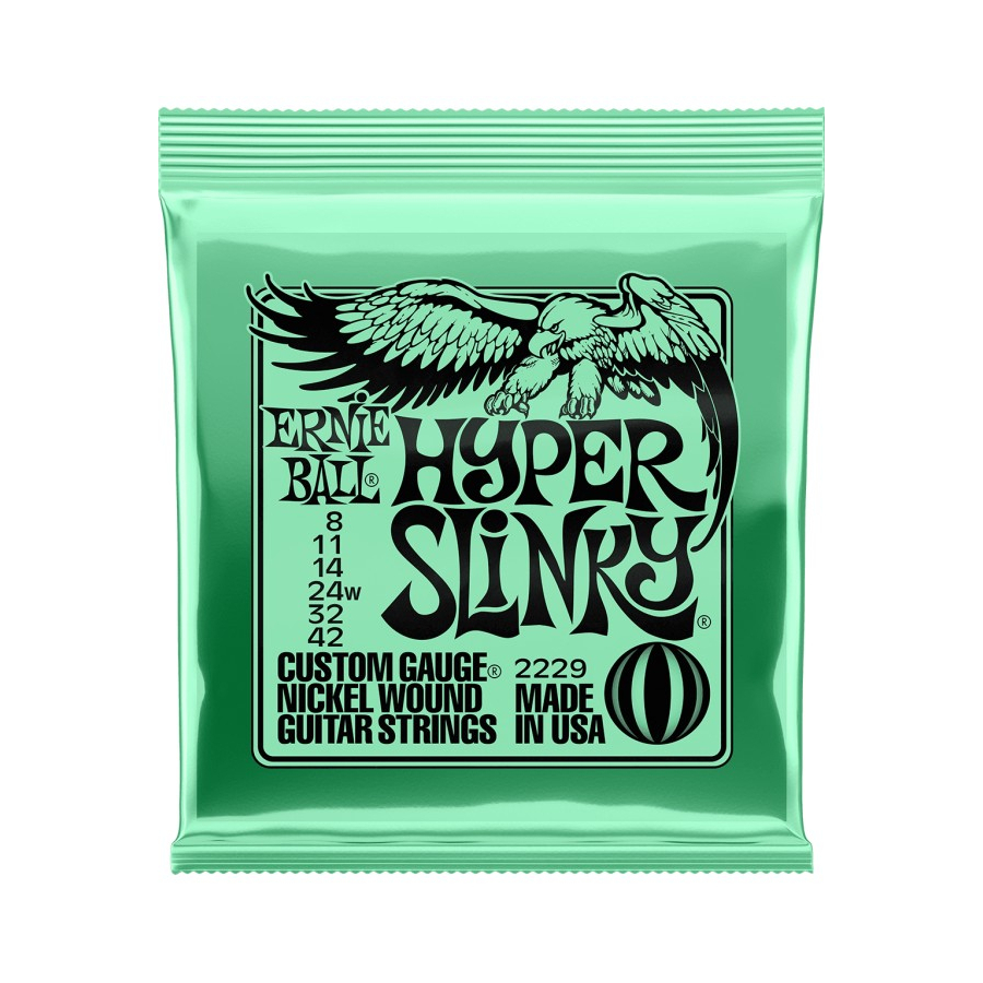 Somos distribuidores directos de la marca Ernie Ball Las cuerdas Hyper Slinkys se ubican perfectamente entre los sets populares Super Slinky y Extra Slinky, mientras proporcionan una sensación ligera y rápida con un poco menos de tensión en las cuerdas superiores. Esta combinación es perfecta para los músicos que buscan diferencias mínimas en tono y tensión a las cuerdas Super Slinky. Calibres .008, .011, .014, .024w, .032, .042 Hechas en Estados Unidos con los más altos estándares de calidad y selección de materiales.