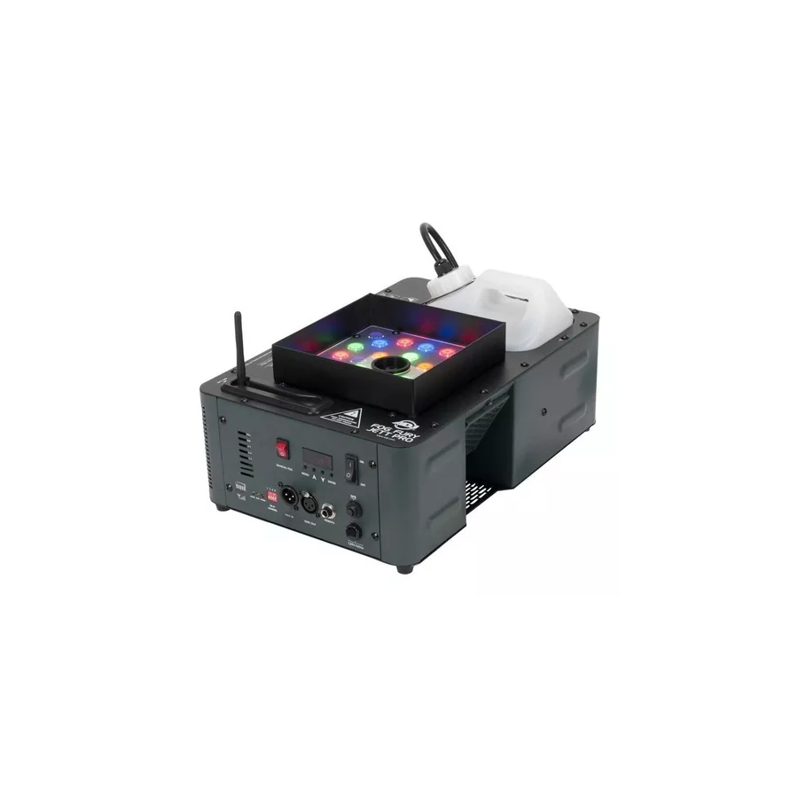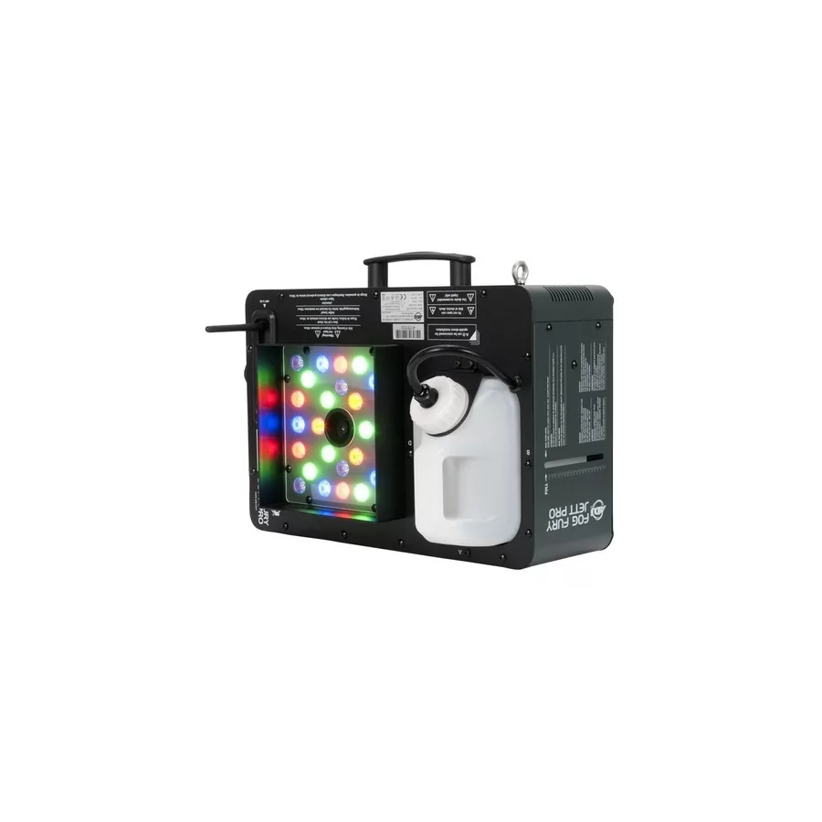 La ADJ Fog Fury Jett Pro es una máquina de niebla vertical de alta velocidad que mezcla color en la niebla a partir de 28 LED de 3 vatios (6 LED rojos, 7 verdes, 6 azules, 3 ámbar y 6 UV). El Fog Fury Jett Pro produce una ráfaga de niebla seca y uniforme de más de 40 pies (12 metros) en el aire. Tiene un diseño especial de elemento calefactor que utiliza una transmisión de tipo aceite en toda la tubería para evitar la obstrucción. También está equipado con un sistema de bomba italiano de alto rendimiento para un rendimiento óptimo. La tecnología electrónica thermo sensing (ETS) de ADJ está a bordo para mantener niveles óptimos de calor con un corto tiempo de calentamiento entre las explosiones de niebla.