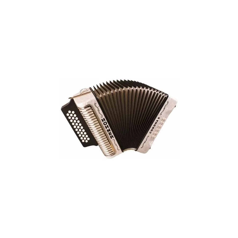 Acordeon diatonico HOHNER corona ii sol-do-fa, cuenta con 31 botones en 3 hileras, 62 notas, 2 voces y 12 bajos, color negro, con funda(antes a5621s). su diseño único, el sonido y la calidad han hecho que este instrumento sea para todo tipo de necesidades en música.